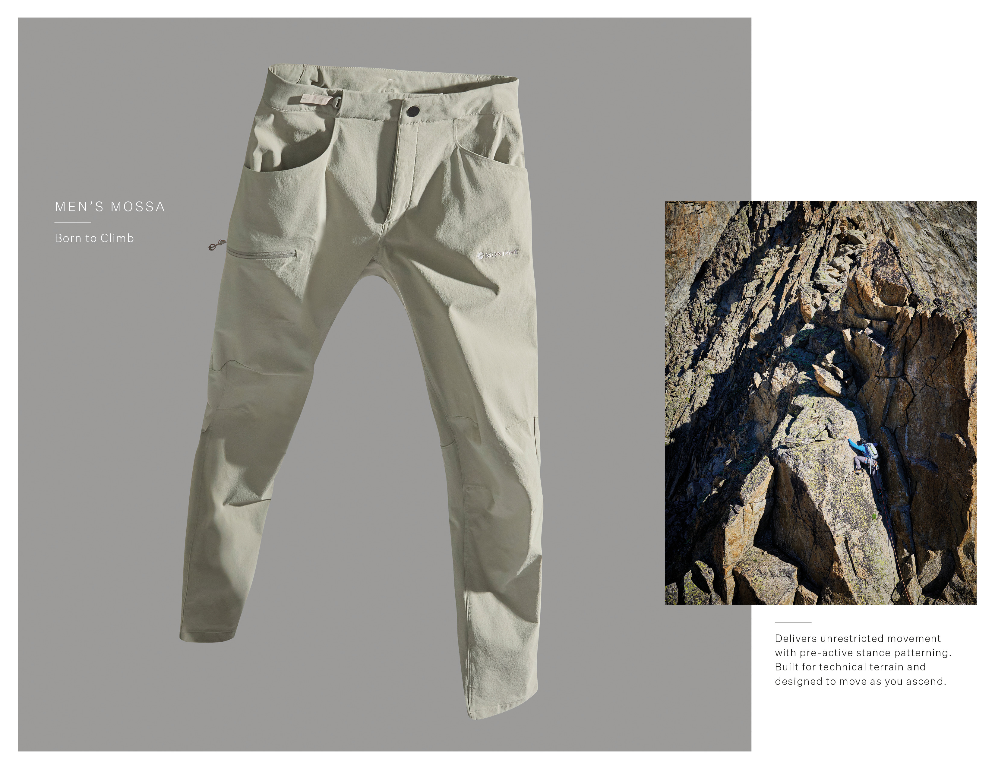 V nové kolekci Montane zaujmou také technické kalhoty. Model Mossa Pants je vyroben z materiálu GRANITE Flex – odolného 4směrného strečového nylonu z recyklovaných vláken.